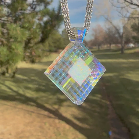 Dichroic glass pendant with white opal